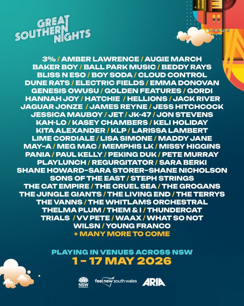 One of the Northern Rivers’ best, MATT CORBY, joins the GTM lineup fresh off the release of his long-awaited fourth studio album, TRAGIC MAGIC (scheduled to drop in March 2026). Corby’s voice has captivated Australian audiences for many years, his music becoming a staple on the life soundtrack for many Australian music fans. The six time Platinum selling artist brings the soul and seasoning to each record he touches and as a live performer, Corby is one of one.
