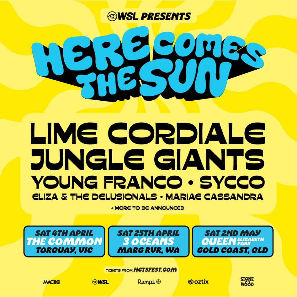 Returning in 2026 bigger and better than ever, Here Comes The Sun defends its title as the most progressive music festival in Australia with the announcement that it has partnered with World Surf League, and will be presenting three incredible events in tandem with the World Surf League’s (WSL) Australian Championship Tour events in 2026.