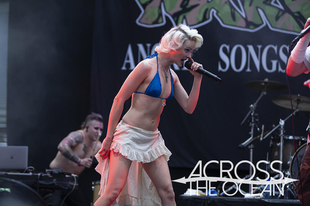 Back inside to the “cooler” (literally) stage and Wargasm followed with a set of songs that felt tribal and primal, a heavy, stomping pulse. Their mix of heavy guitars and dance-floor electronics translated surprisingly well to the festival environment — their set was visceral, sweaty and ridiculously fun to watch.