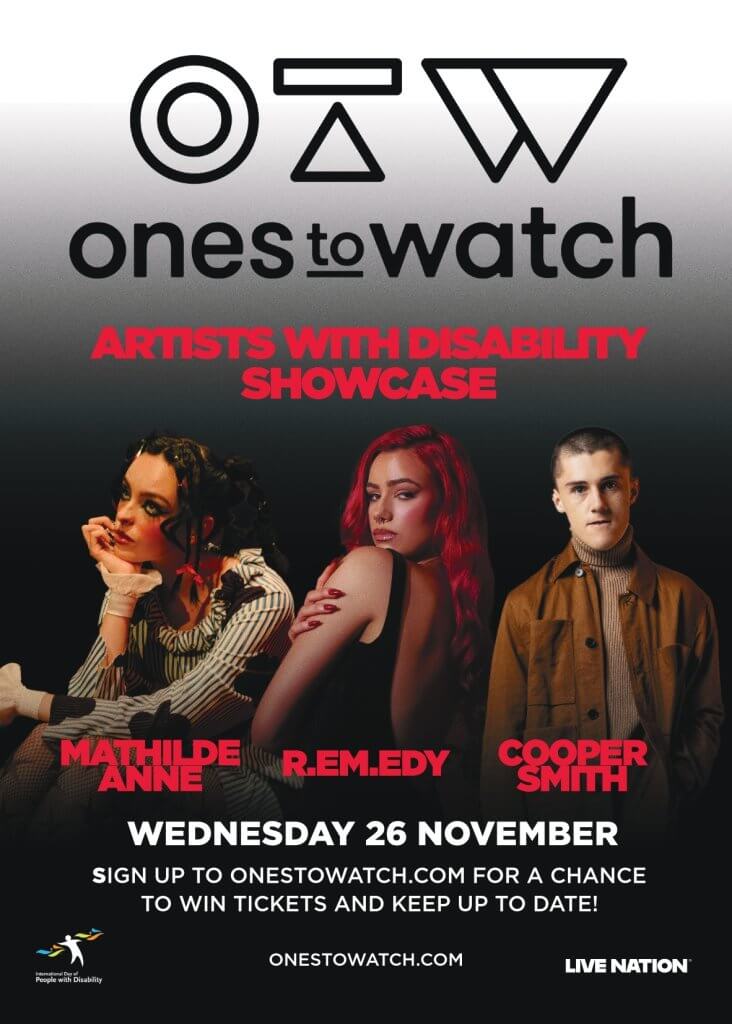 Championing and celebrating incredible artists who have been breaking down barriers with their music, encouraging inclusivity and an industry shake-up that has long been needed to benefit those living with myriad disabilities, ONES TO WATCH is excited to bring a new roster of expertly curated talent to a room full of fans and industry professionals alike.
