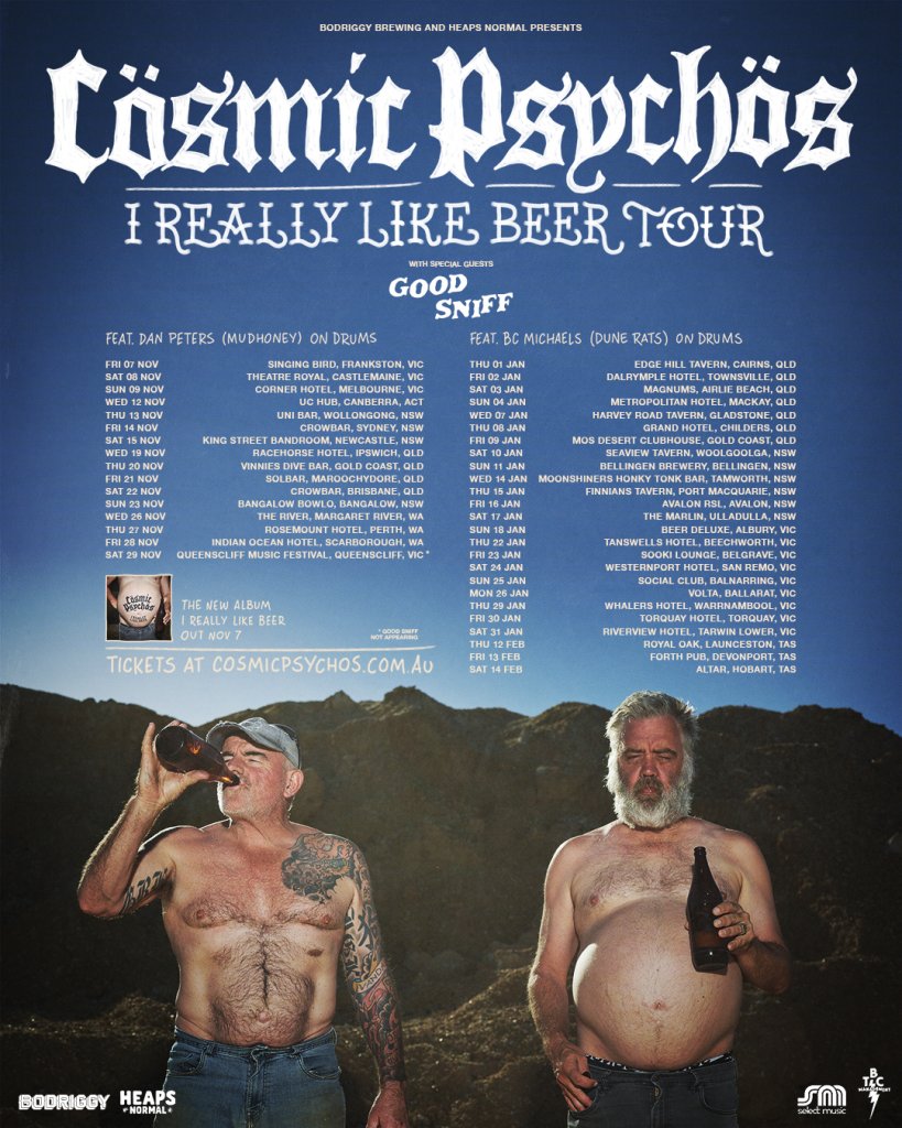 Australia’s favourite beer-fuelled legends Cosmic Psychos are back with their twelfth studio album I Really Like Beer on Friday November 7, and they’re hitting the road the very same day. No mucking around.