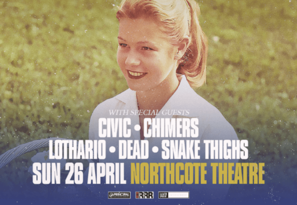 Helmet welcome visceral lo fi Melbourne punks Civic, Wollongong post hardcore duo Chimers, the dangerous punk rock of Lothario, cerebral heavy Castlemaine duo DEAD and new Naarm rising lights Snake Thighs, for an unforgettable afternoon at The Northcote Theatre.