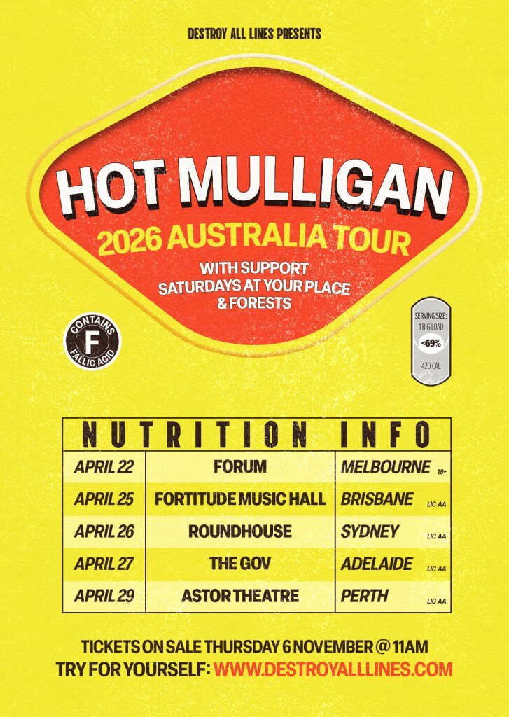 Kicking off in Melbourne on April 22, Hot Mulligan will do a lap around the country delivering their signature blend of raw emotion and high-octane energy to stages across Brisbane, Sydney, Adelaide and Perth. If their last Australian visit is anything to go by – where demand was so overwhelming that venues needed to be upgraded – these shows will sell out fast.