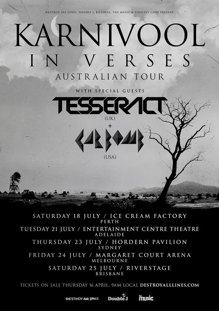Perth icons Karnivool are thrilled to announce they are taking their number one album, In Verses, on the road for the first time, delivering the biggest headline shows of their career. To celebrate, Karnivool will be joined by special guests TesseracT (UK) and Car Bomb (USA) for an unmissable night of heavy excellence.