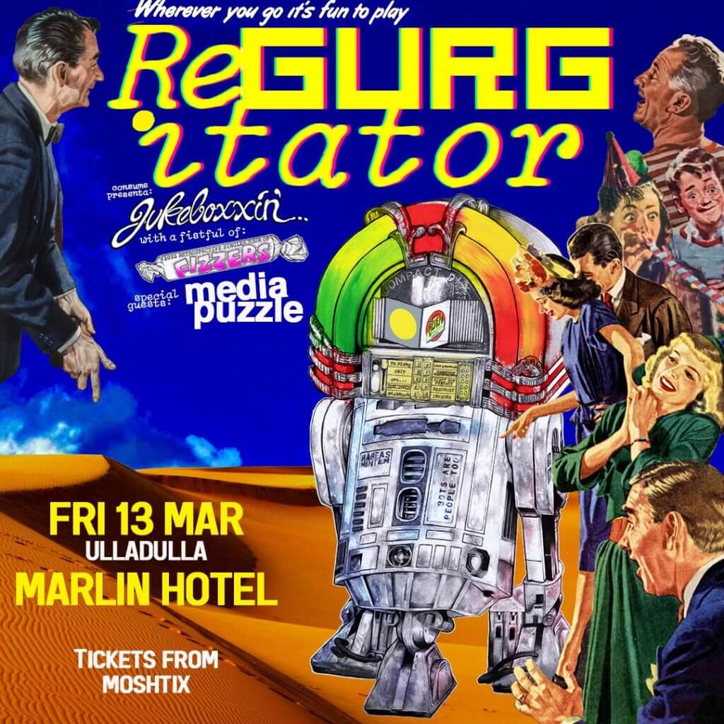 Plus special guests MEDIA PUZZLE. Tickets from eventbrite and oztix https://ssaclub.com.au/events/regurgitator-jukeboxxin-tour/ https://tickets.oztix.com.au/outlet/event/8a98b0a9-8823-4e92-8639-30cae8504d00